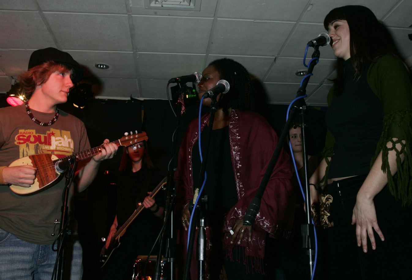 Here are some images from an earlier concert in Acton (click thumbnails for full images). Also pictured are: Reuben Jensen (electric guitar), Dan Bell (mandolin), Manfred Hoebel (vocals), and Nadine Benjamin and Marta Aguilera Xiol (backing vocals and percussion).